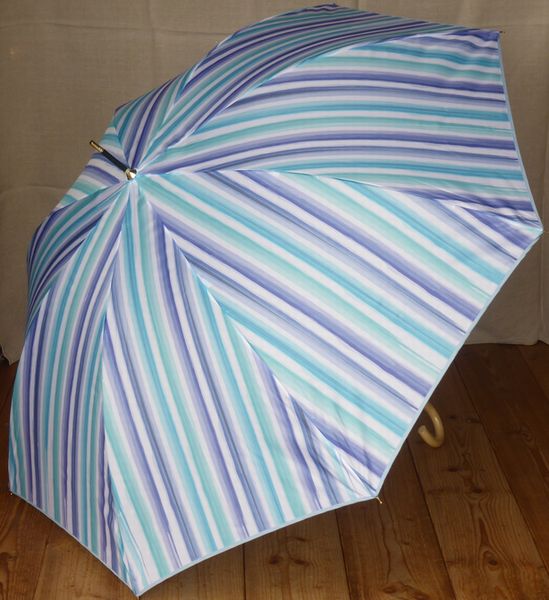 ![]() ジャンプ傘 ブルー系のストライプ柄です。 雨晴兼用、UVカット仕様です。 2420円 ![]() |