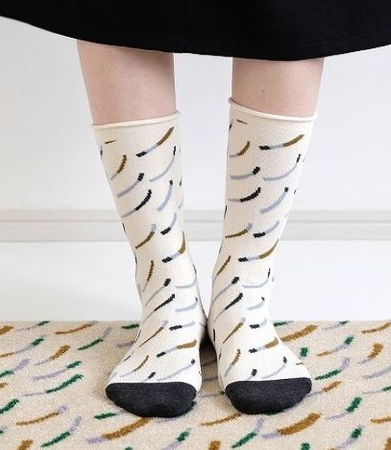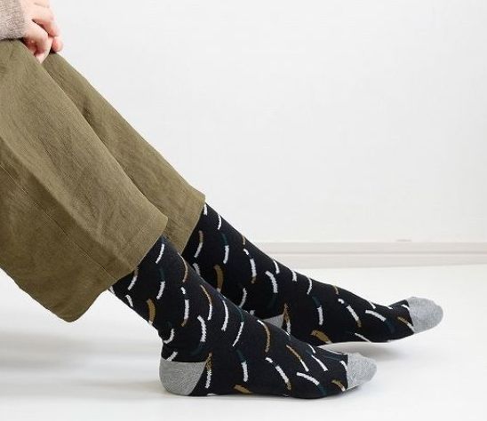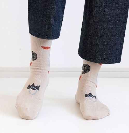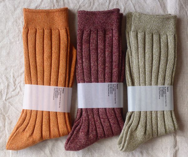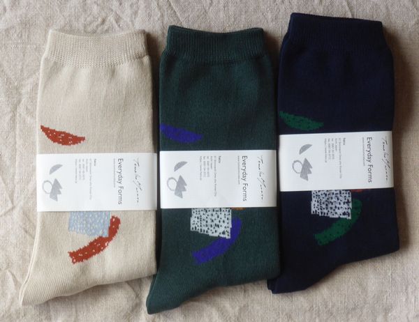 ![]() ![]() ![]() ![]() 「hacu」の新作ソックス 『ムラタトモコ+hacu Everyday forms』 色はベージュ、グリーン、ネイビー 23~25㎝ 1650円 ![]() |