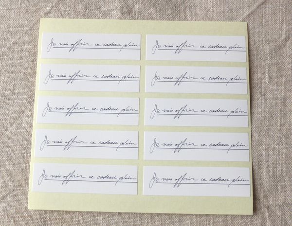 ![]() フレンチシール 袋止めにしたり、リボンに貼ったりとオシャレにラッピング出来ます。 シール1枚の大きさ:横5.5㎝ 縦1.5㎝ 2シート 180円 ![]() |
