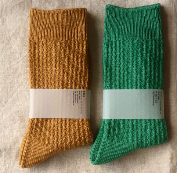 ![]() 「hacu」の靴下 全パイルで暖かいソックス『ふゆごもり』 左右異なるカラー 色はベージュ系、オレンジ系sold、ブラウン系 23~25㎝ 2200円 ![]() |