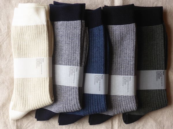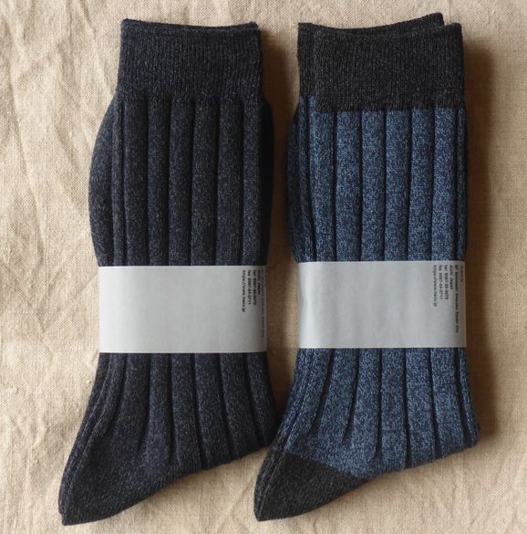 ![]() 「hacu」のメンズ太リブソックス 履きやすい定番の靴下です。 色はネイビーとブルー 25~27㎝ 990円 ![]() |
