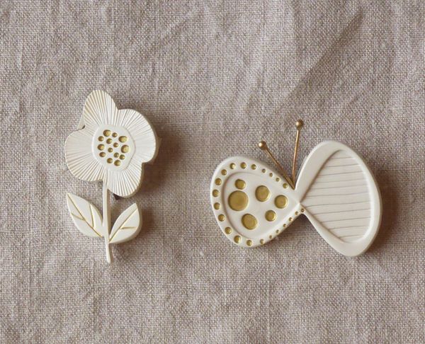![]() ブローチ アイボリーのやさしい色合いです。 ハナ:横3㎝ 縦5.5㎝ ちょうちょ:横5.5㎝ 縦4.3㎝sold 1600円 ![]() |