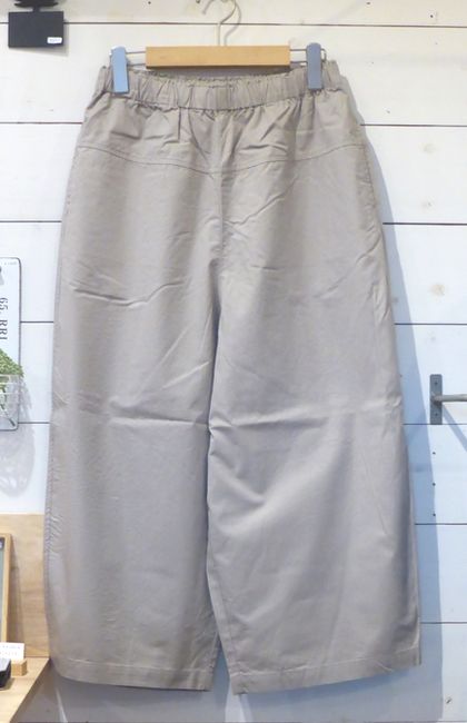 ![]() コットンパンツ ウエストは内ひもで調節可能です。 色はグレージュ 着丈84㎝ 4900円 ![]() |