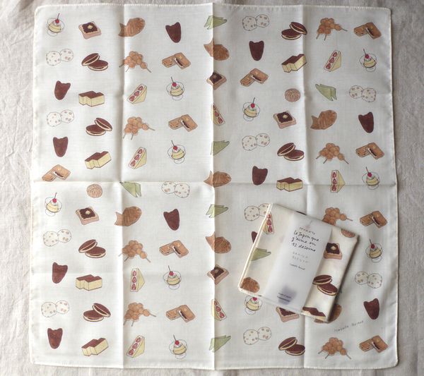 ![]() ガーゼハンカチ フランス在住のイザベル・ボアノさんが好きな 日本のお菓子がデザインされています。 52×52㎝ 1000円 ![]() |
