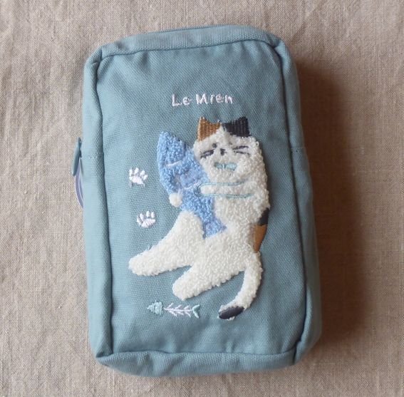![]() ポーチ 立体刺繍されたネコが可愛いポーチです。 色はブルーグリーン 横10.5㎝ 縦16.5㎝ まち5㎝ 1000円 ![]() |