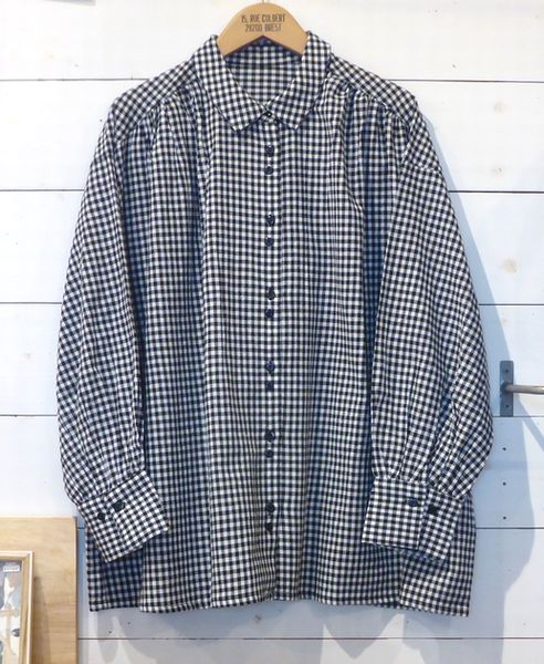 ![]() ギンガムチェック柄ブラウス コットン・レーヨン混紡で柔らかです。 色はブラック×ホワイト 身幅74㎝ 着丈68㎝ 2500円 ![]() |