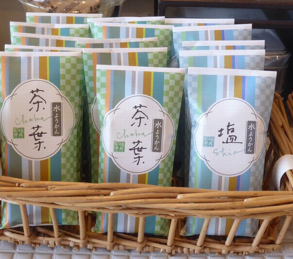 ![]() 水ようかん 『茶葉』と『塩』の2種類あります。 ほどよい甘さ。 パッケージが素敵で プレゼントにも良いと思います。 各130円 ![]() |