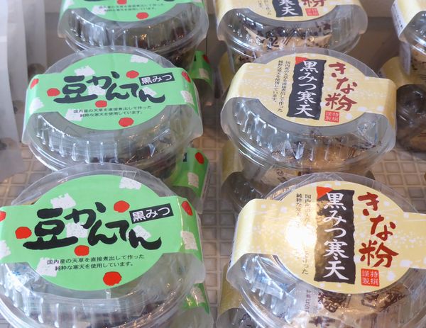 ![]() 『豆かんてん 黒みつ』 『黒みつ寒天 きな粉』 寒天に黒みつ、最高の組み合わせです。 各350円 ![]() |