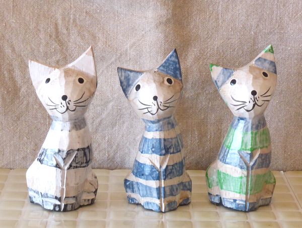 ![]() ネコのオブジェ ボーダーシャツを着ているような可愛いネコです。 色はベージュ系、ブルー系、グリーン系 横4㎝ 奥行2.5㎝ 高さ10.5㎝ 500円 ![]() |