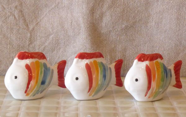 ![]() 陶器の金魚 金魚鉢に浮かせることもできるオブジェです。 このまま飾っても可愛い。 全長6㎝ 幅3㎝ 高さ5㎝ 380円 ![]() |