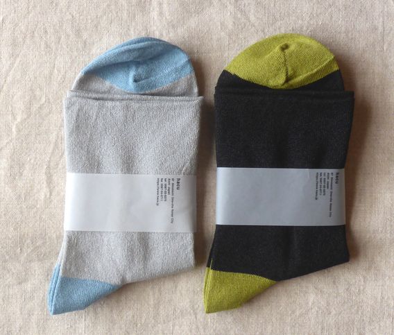 ![]() ![]() ![]() 「hacu」の新作ソックス 『和紙+レーヨン』 色はグレー×ライトブルー、ブラック×グリーン 23~25㎝ 1200円 ![]() |
