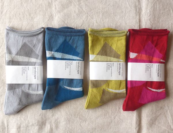 ![]() ![]() ![]() ![]() ![]() 「hacu」のソックス 『HASHIMOTO NAOKO + hacu landscape』 色はグレー、ブルー、イエロー、レッド 23~25㎝ 1600円 ![]() |