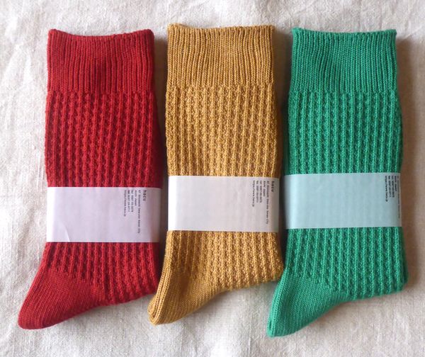 ![]() ![]() ![]() ![]() 「hacu」のソックス 『ざっくりかのこ』 色はレッド、オークル、グリーン 23~25㎝ 1600円 ![]() |