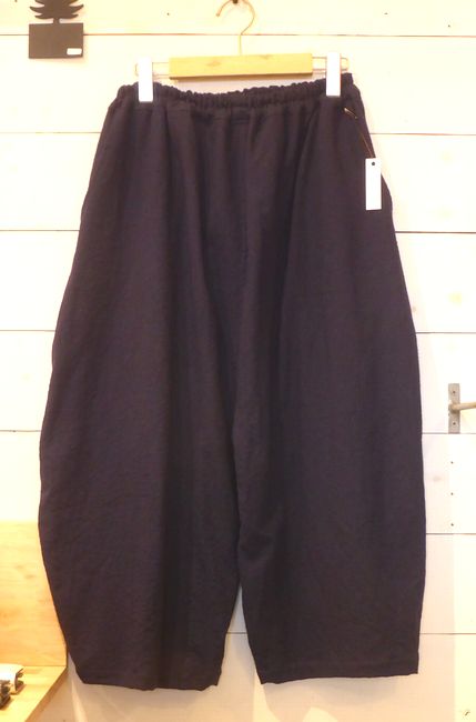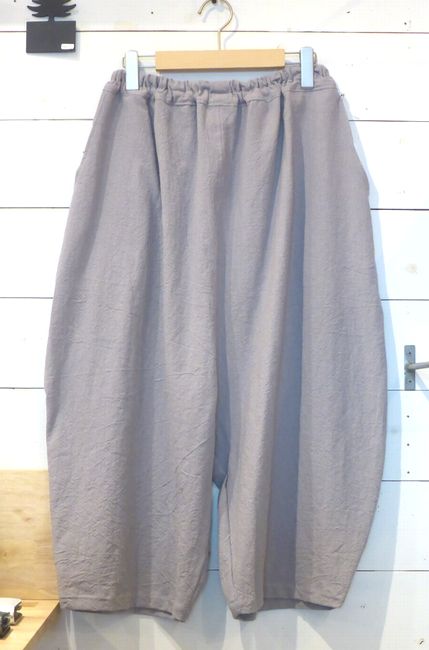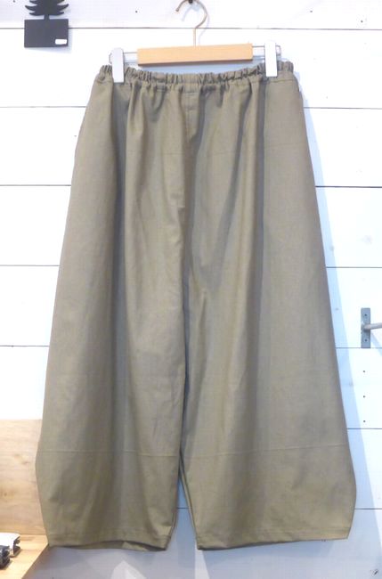 ![]() コットンパンツ ゆるやかに裾を絞ったフォルムです。 ウエストは内ひもで調節可能。 色はベージュ 着丈90㎝ 4900円 ![]() |