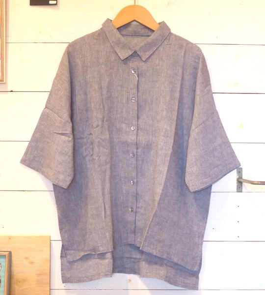 ![]() ![]() ![]() ![]() シャツ コットンリネンの5分袖シャツです。 色はオフホワイト、淡グリーン、ブルー、チャコール 身幅60㎝ 着丈前62㎝ 後69㎝ 1900円 ![]() |