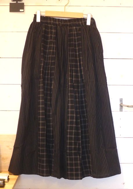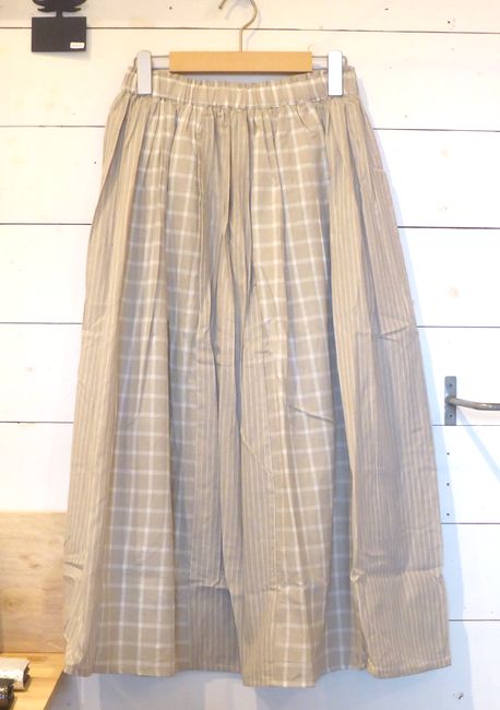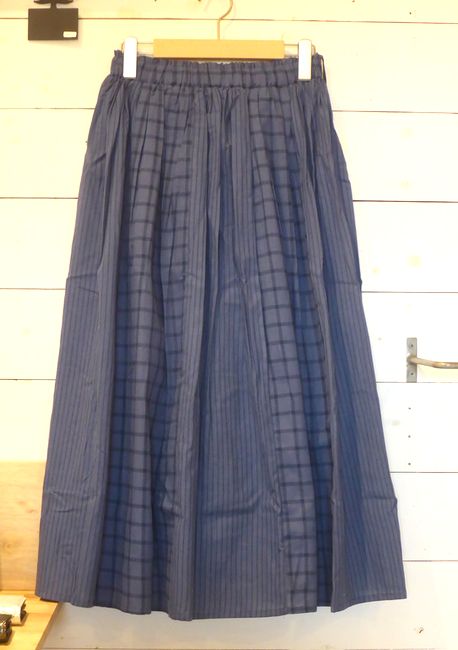 ![]() ![]() ![]() スカート ストライプとチェック柄を合わせたデザイン。 素材はコットンです。 色はグレージュ、ブルー、ブラック 着丈85㎝ 3900円 ![]() |